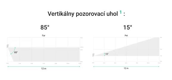 1Závisí od výšky inštalácie. Uhol je 85° pri 2,4 m a 15° pri 1 m.