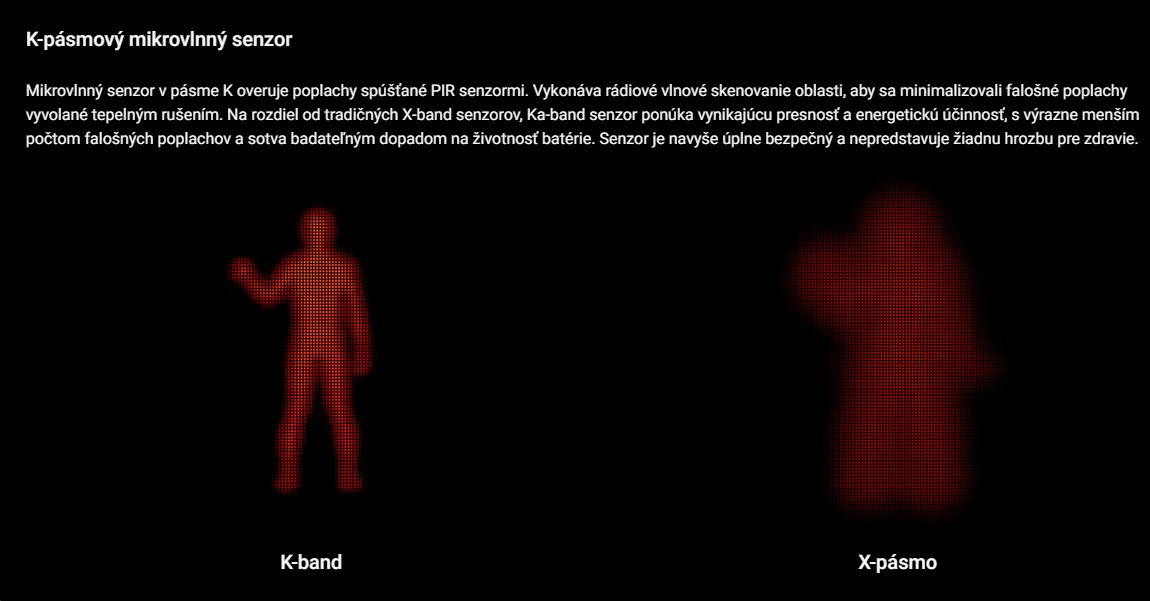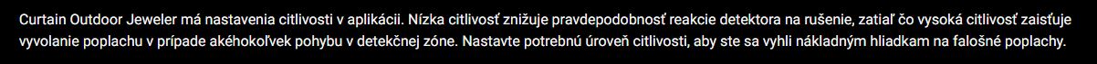 Curtain Outdoor Jeweler dokáže detegovať pohyb až na vzdialenosť 12 m, túto vzdialenosť je možné prispôsobiť vlastnostiam stráženého objektu. Napríklad, rozsah môže byť nastavený tak, aby detektor pokryl dvere a okná, ale ignoroval zóny s vysokou premávkou, ako je chodník. Úrovne citlivosti detekcie sú tiež nevyhnutné na obmedzenie falošných poplachov. Nastavte citlivosť na nízku v oblastiach náchylných na falošné poplachy, strednú pre väčšinu lokalít a vysokú v zónach bez prekážok, kde je rozhodujúca okamžitá detekcia poplachov.