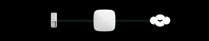 Všetky zariadenia Ajax vykonávajú automatickú autodiagnostiku a hlásia ústredni svoj stav. Základné parametre, vrátane sabotáže, komunikácie, napájania a stavov senzorov, sú neustále monitorované. Ajax Cloud server riadi komunikáciu medzi hubom a aplikáciami Ajax a zabezpečuje okamžité upozornenia pre centrá prijímania alarmov (ARC), bezpečnostné spoločnosti a používateľov.