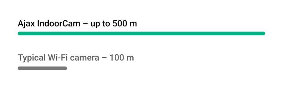 Pre maximálnu spoľahlivosť je možné kameru IndoorCam pripojiť k hubu Ajax, čo poskytuje ďalší záložný komunikačný kanál, ktorý zvyšuje celkovú stabilitu systému. Ak sa Wi-Fi pripojenie preruší, kamera naďalej prenáša udalosti, alarmy a fotografie pomocou zabezpečených proprietárnych rádiových protokolov Ajax – Jeweller a Wings. Vďaka komunikačnému dosahu až 1 700 metrov s hubom zostáva IndoorCam pripojená aj vo veľkých priestoroch.
