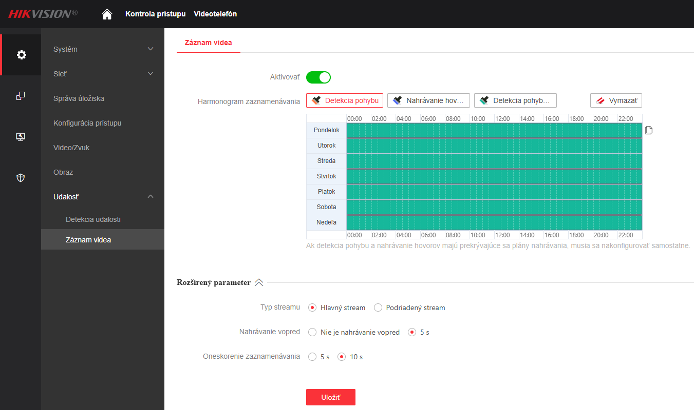 Nahrávanie video udalostí na SD kartu
