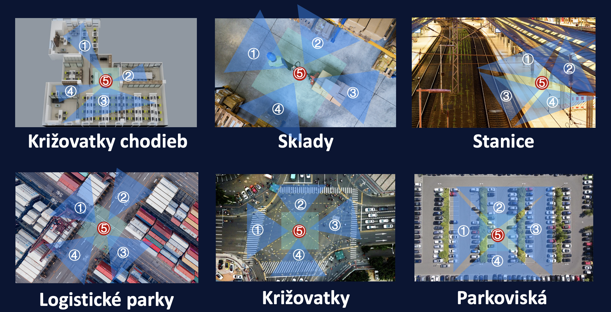 - Štyri varifokálne objektívy horizontálne pokrytie