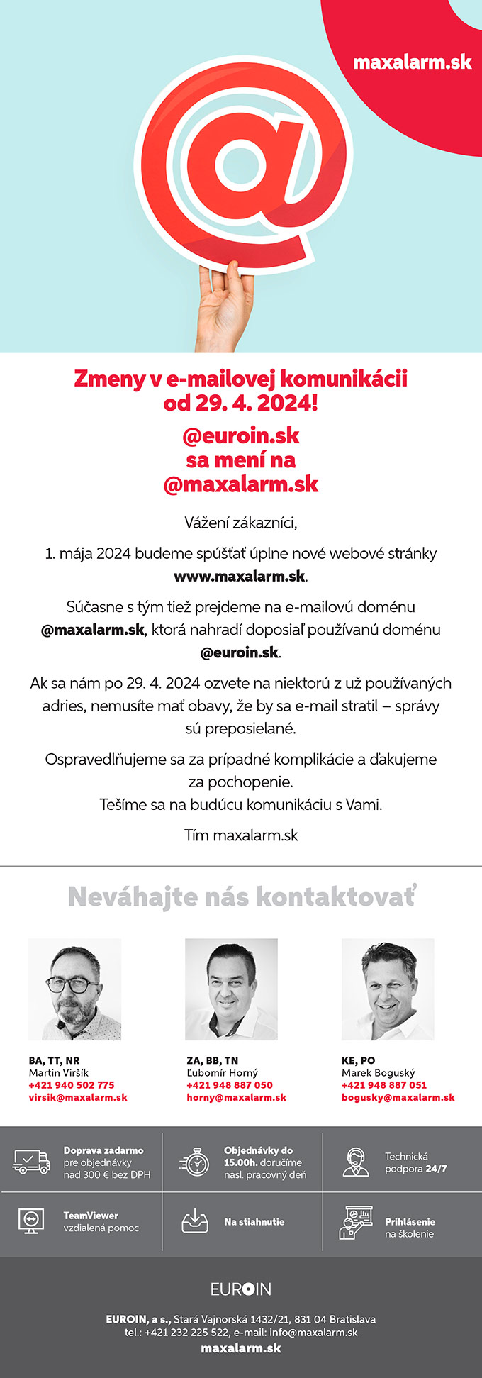 Zmeny v e-mailovej komunikácii od 29.4.2024