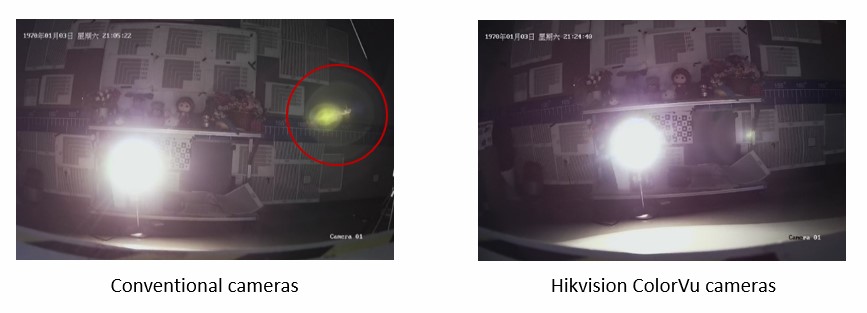 Ako príklad možno všeobecne uviesť, že informácie o registračných značkách vozidiel podozrivého sú rozhodujúce pri vyšetrovaní dopravných nehôd. Ak je však vozidlo bez licencie alebo je poznávacia značka zámerne zakrytá, môže byť vozidlo identifikované iba podľa jeho vlastností - značky, modelu a najmä farby. Takže aj keď vonkajšie svetelné podmienky sú zlé, dokonca aj za úplnej tmy, kamery HIKVISION ColorVu stále zachytávajú cenné informácie o farbách.