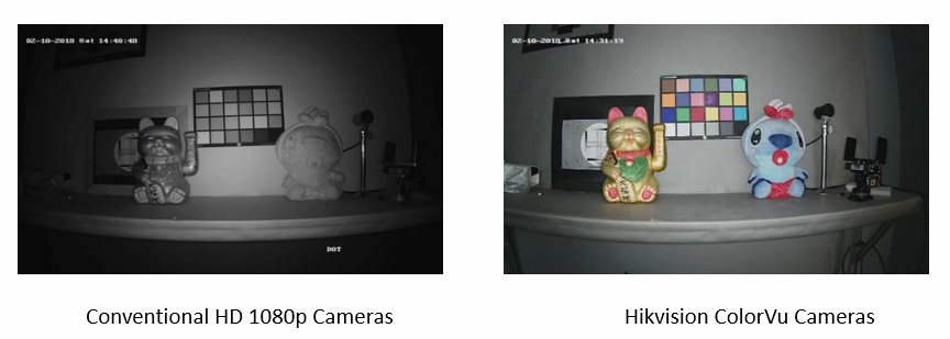 Vysoká citlivosť kamier ColorVu je vhodná pre sledovanie, kedy sú vyžadované farebné snímky s vysokým rozlíšením aj v prostredí s nízkym svetlom. Senzory HIKVISION ColorVu kamery demonštrujú mimoriadnu účinnosť fotovoltaické konverzie. Používajú pokročilú senzorovú technológiu - novú štruktúru zberu svetla, ktorá výrazne zlepšuje jeho využitie. Testy ukazujú, že kamery ColorVu poskytujú farebnú a ostrý obraz až do najnižšej úrovne osvetlenia. Súčasne ich samočinný adaptačný algoritmus 3D DNR na ISP zaručuje vysokú kvalitu zobrazenia.