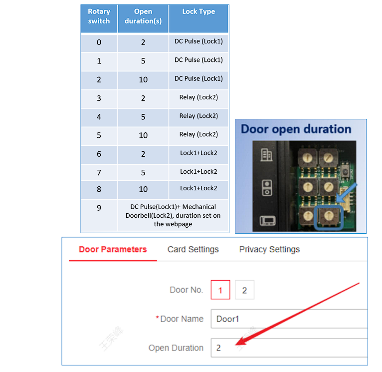 Pozor nato že od firmvéru V1.2.0_250613 určeného pre DS-KD7003EY-IME2 sa zmenila logika DEC prepínaču ktorým ovládame výstupy (relé) po novom je možné zámky konfigurovať vo WEB rozhraní len v momente, že máte DEC prepínač na pozícií 9. Ostatné nastavenia si môžete pozrieť nižšie: