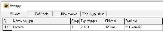 Vyberte si vstup, na ktorom nemáte fyzicky nič pripojené. Pomenujte ho, zvoľte typ vstupu "NO" a funkciu podľa potreby.