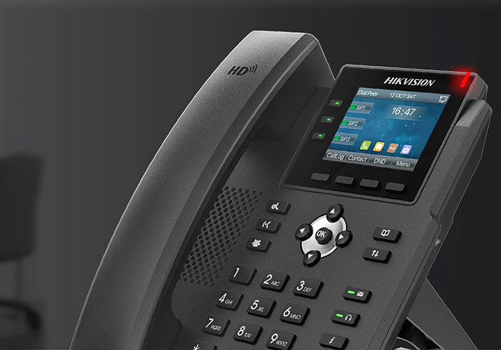 DS-KP6000-HE1 je SIP telefón so štyrmi SIP linkami s pripojením pomocou ethernetu s PoE. S telefónom DS-KP6000-HE1 a dobre nastavenou SIP ústredňou vieme uskutočňovať obojsmerné audio hovory, presmerovať hovor, vytvoriť konferenčny hovor, ovládať relé na videovrátnikoch a termináloch Hikvision a na termináloch Suprema.