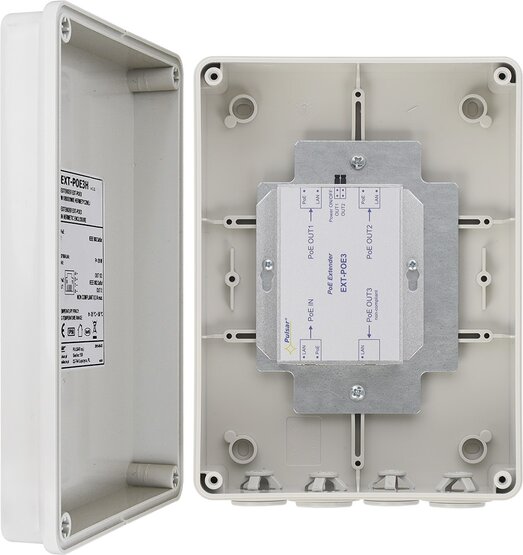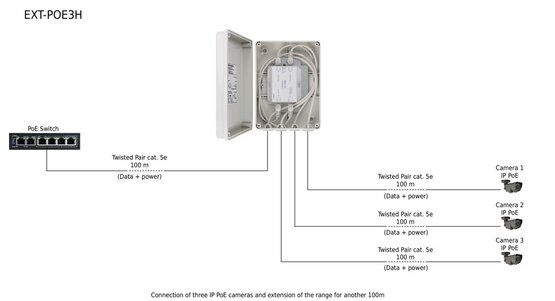 POE IP extender pre 3 kamery, každá do 100m, v hermetickom kryte, IP56