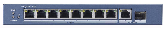 DS-3E0510P - Switch, 8x Gigabit PoE ,1xGbps RJ45, 1x Gbit SFP, PoE power budget 110W