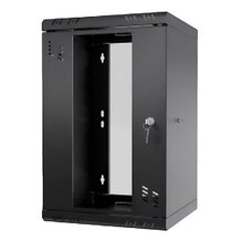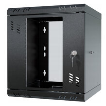 19" dátový rozvádzač 12U-450 mm hĺbka, čierny, demont, dvierka: sklo, prevedenie štandard
