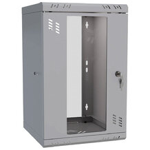 19" dátový rozvádzač 12U-450 mm hĺbka, šedý, demont, dvierka: sklo, prevedenie štandard