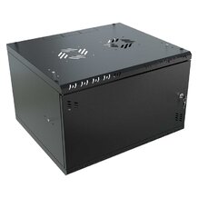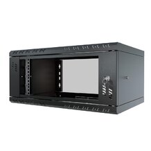 19" dátový rozvádzač 6U-450 mm hĺbka, čierny, demont, dvierka: sklo, prevedenie štandard