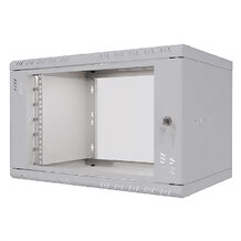 19" dátový rozvádzač 6U-450 mm hĺbka, šedý, demont, dvierka: sklo, prevedenie štandard